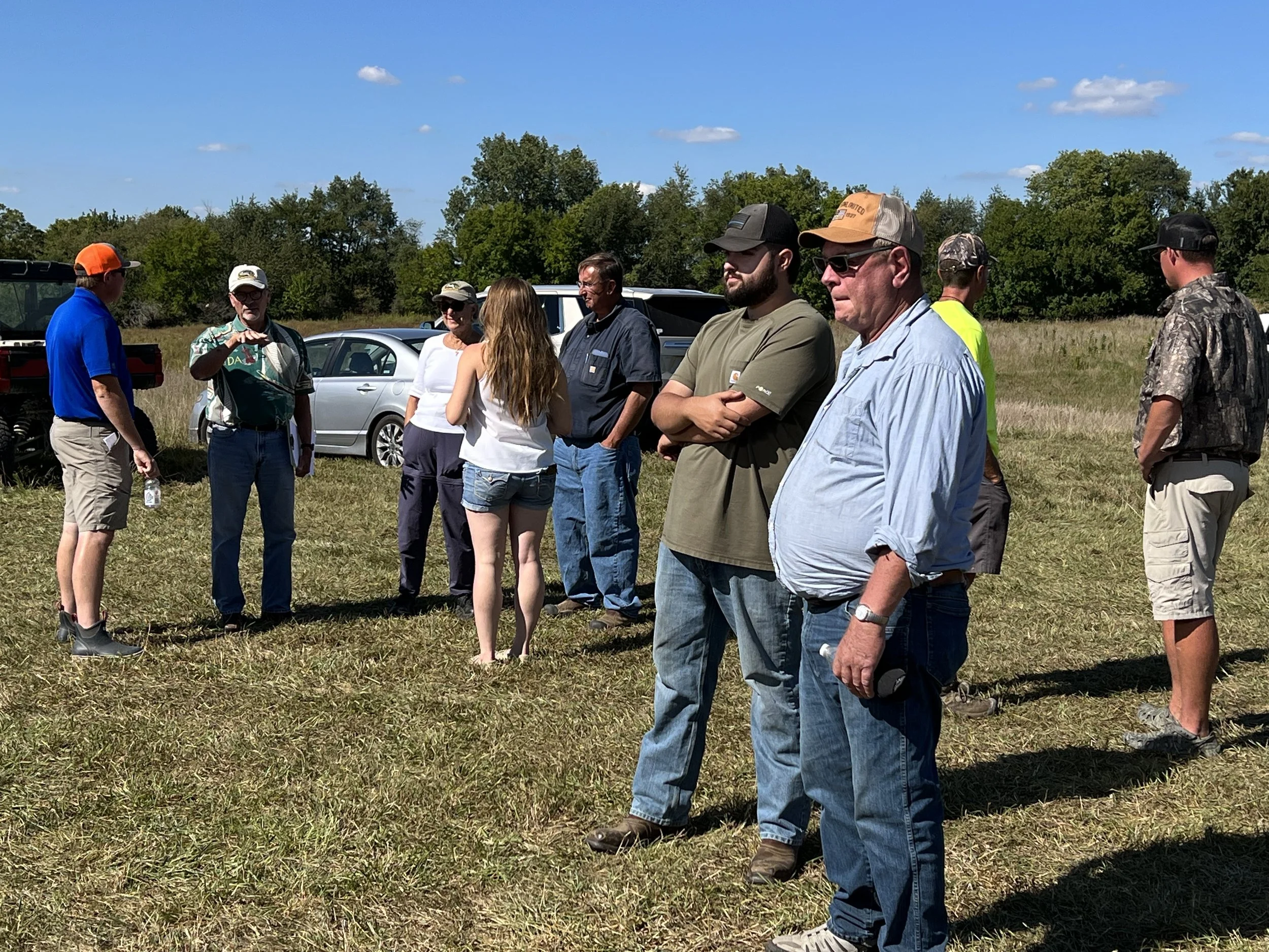 Hunters, hunting dog trainers, and landowners enjoyed a field event at Feather Prairie Farms near Dwight, IL, in mid September. In addition to touring ag tile treatment and restored wetlands, visitors heard Univerisity of Illinois researchers Dr. Mike Ward and Dr. Auriel Fournier discuss upland birds, waterfowl, and wetland management. Following dinner, Dan Irhke of Gun Dog Success discussed how to evaluate a puppy to determine if it has the right attributes to become a great hunting dog and then demonstrated how he and his staff train dogs to be hunting companions.