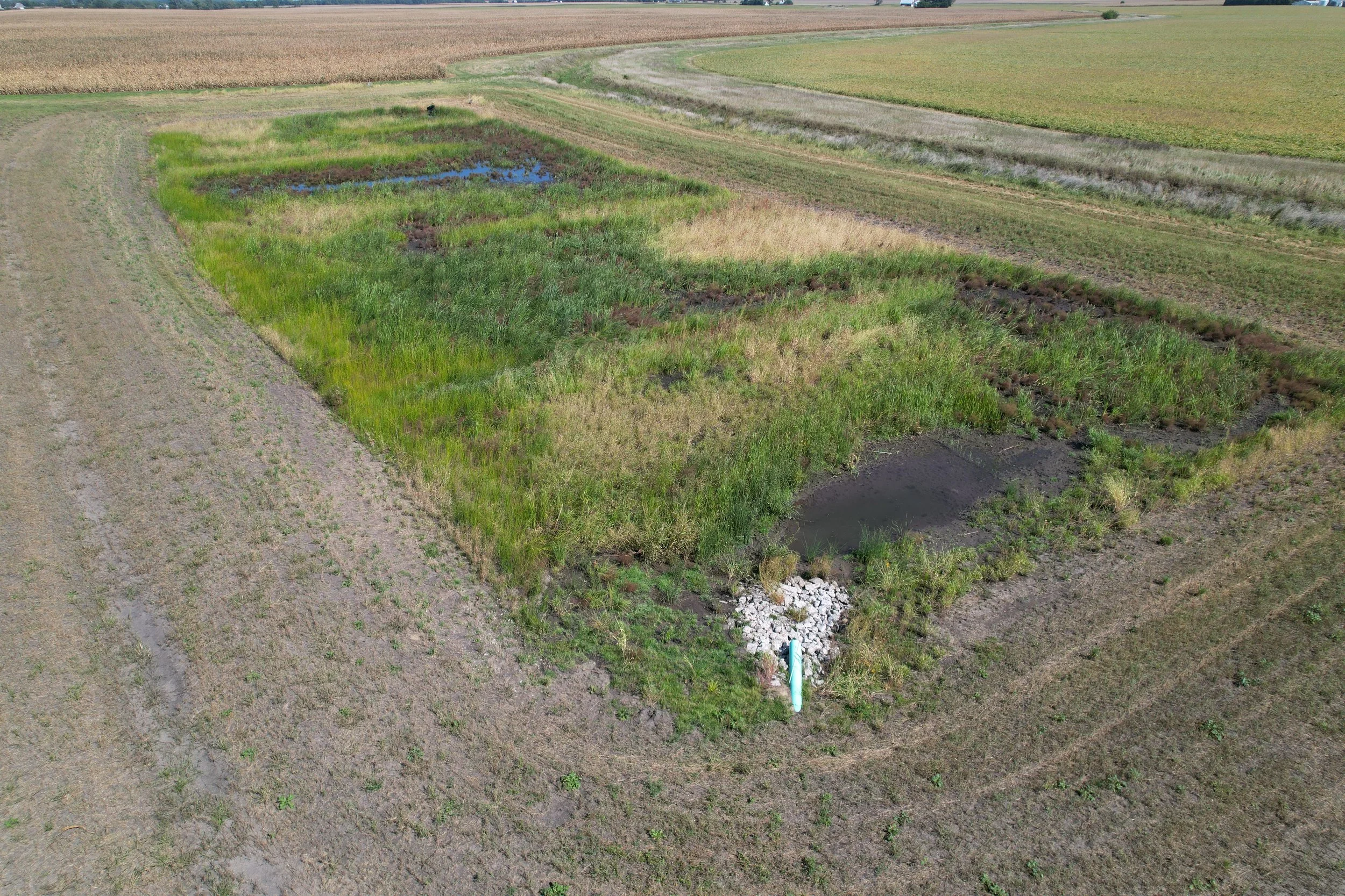 Built in 2021 near Henry, IL this 1.8-acre constructed wetland treats drainage water from 60 acres. It is surrounded by 5.5 acres of buffer.