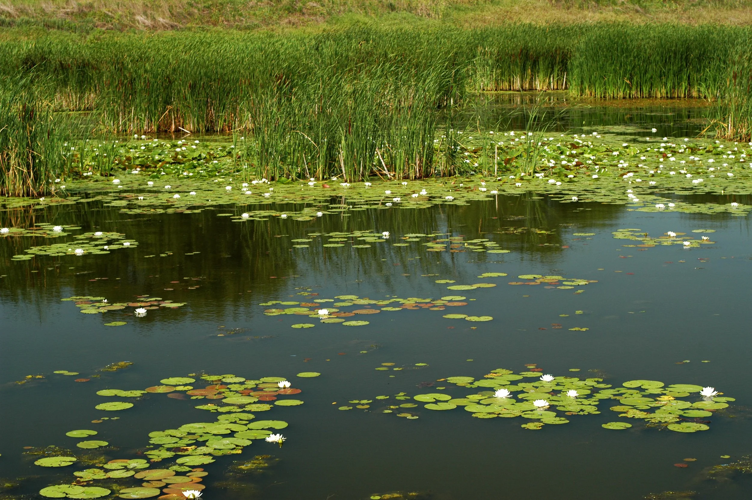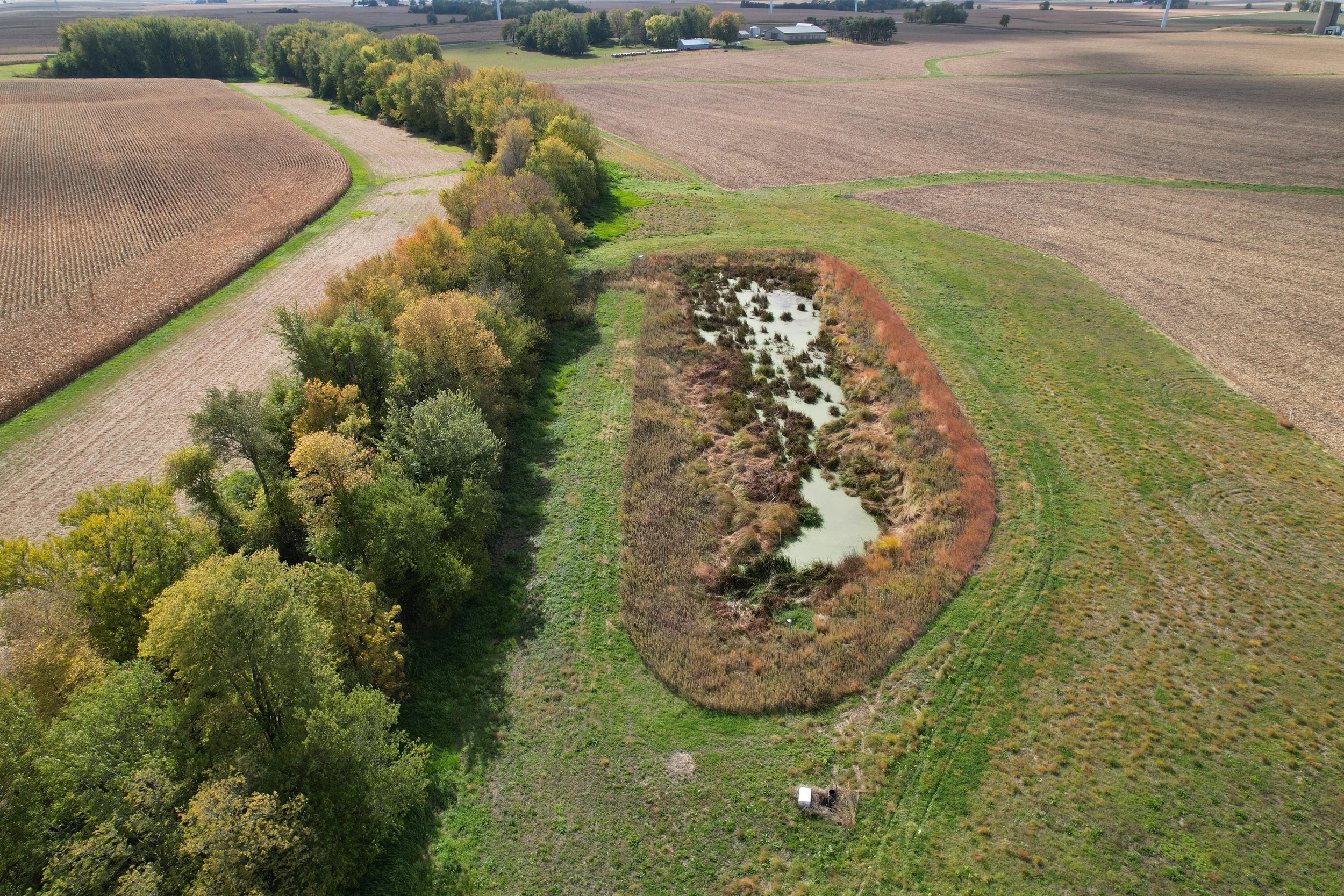 Constructed wetlands can be created on land that was never a wetland or on former wetlands that are now farmed. Like a restored wetland, native hydrophytic vegetation (“water-loving” plants suited to grow where it’s wet) will be planted or seeded, and the microbes and wildlife communities adapted to these wet conditions will flourish over time. However, the diversity of plants is limited to those species that are tolerant of high nutrient levels and varying water levels (flooded to dry periods). Smart Wetlands are constructed wetlands, as Smart Wetlands are designed and sited specifically to capture and treat cropland tile drainage runoff.